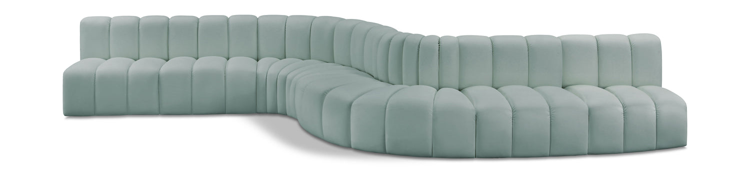 Arc - Faux Leather 8 Piece Curved Modular Sofa - Mint Green