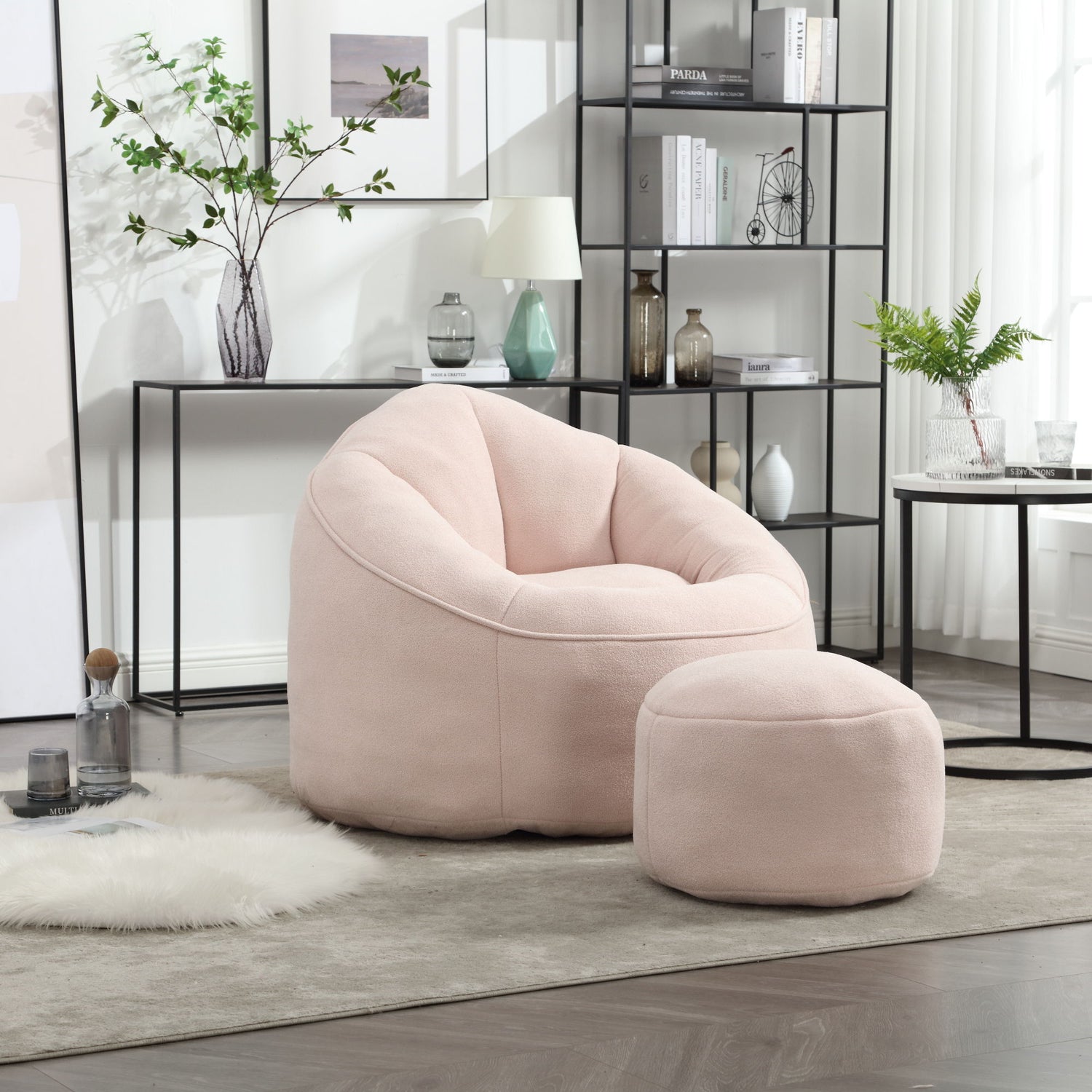 Bedding Bean Bag Sofa Chair High Pressure Foam Bean Bag Chair Adult Material With Padded Foam Padding Compressed Bean Bag With Footrest - Pink