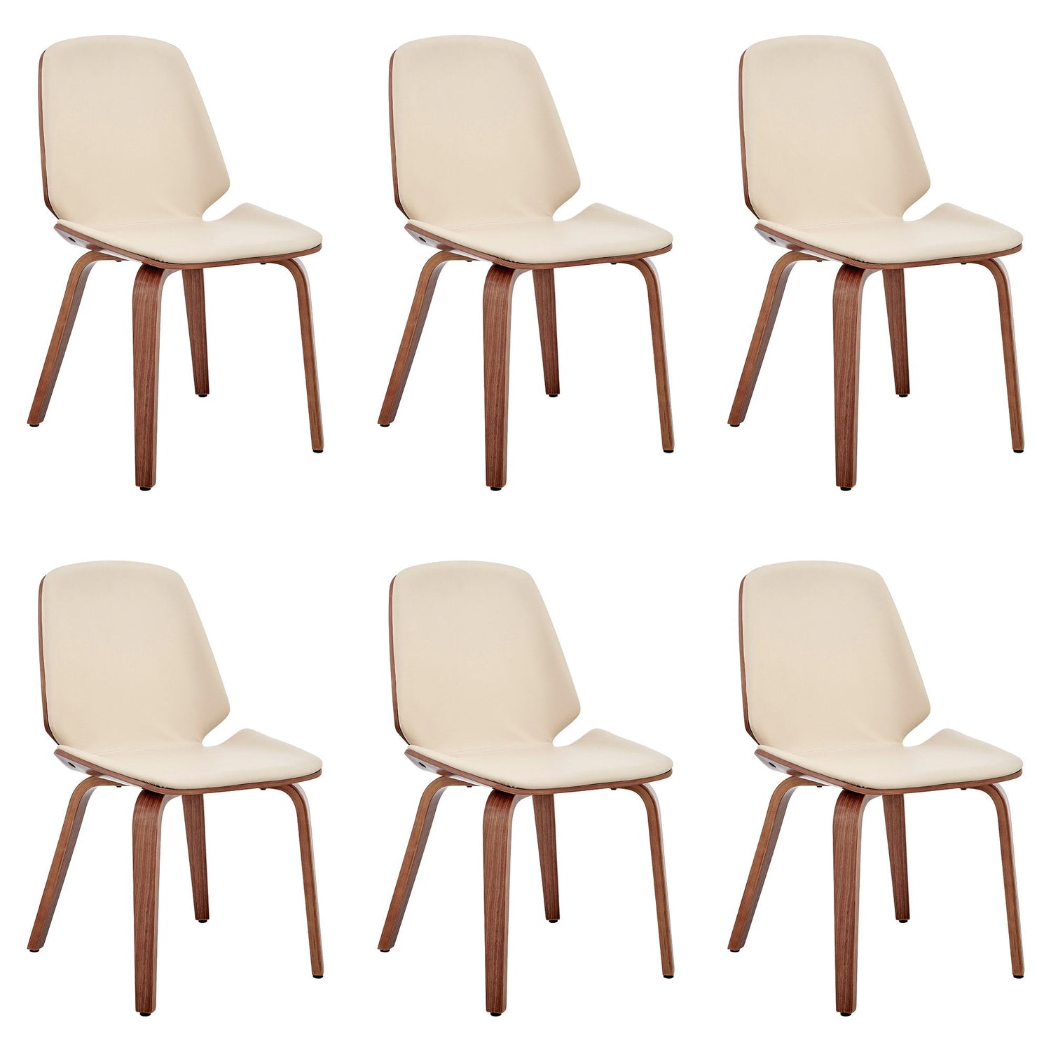 Brinley - Dining Room Accent Chair (Set of 6) - Cream Faux Leather And Walnut Wood