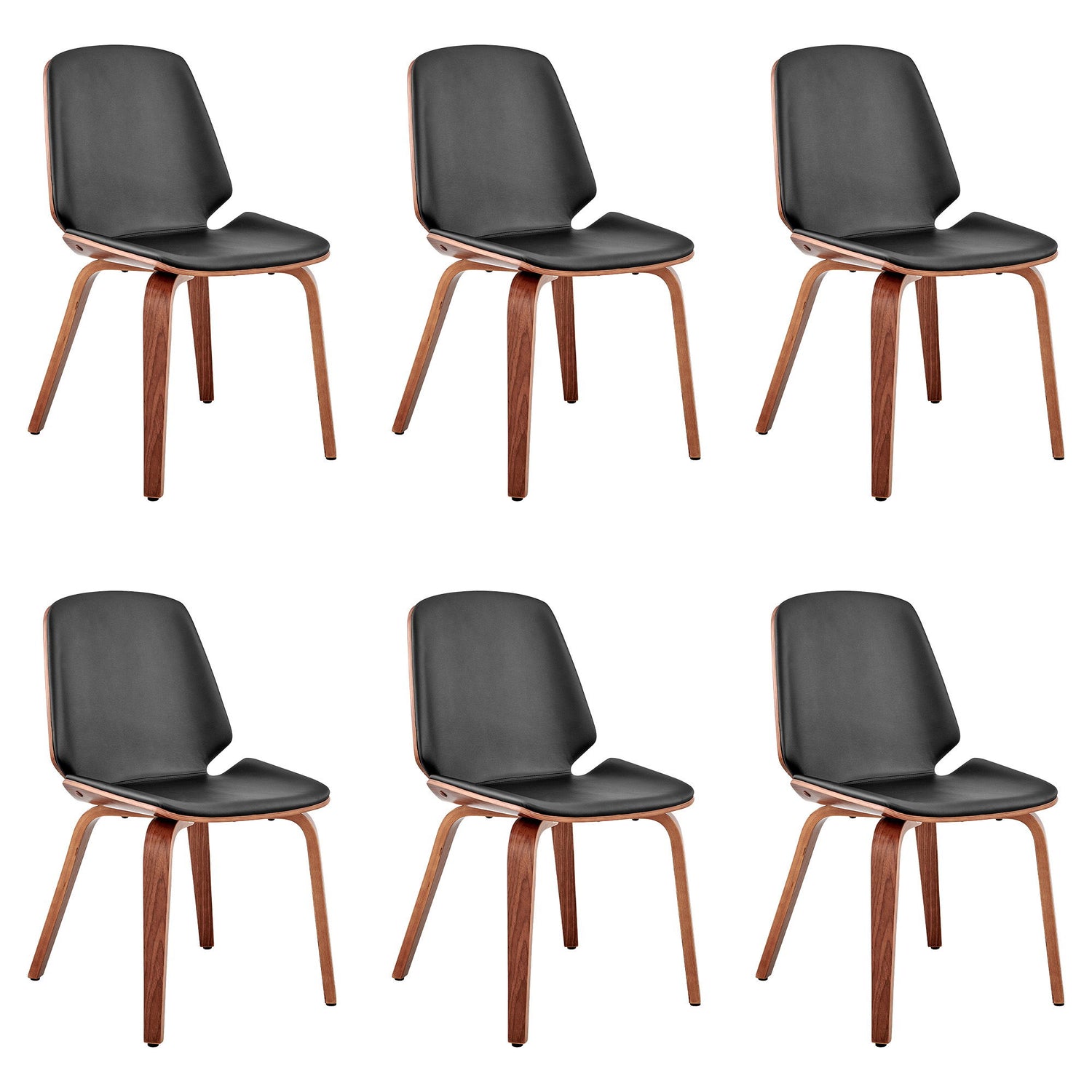 Brinley - Dining Room Accent Chair (Set of 6) - Black Faux Leather And Walnut Wood