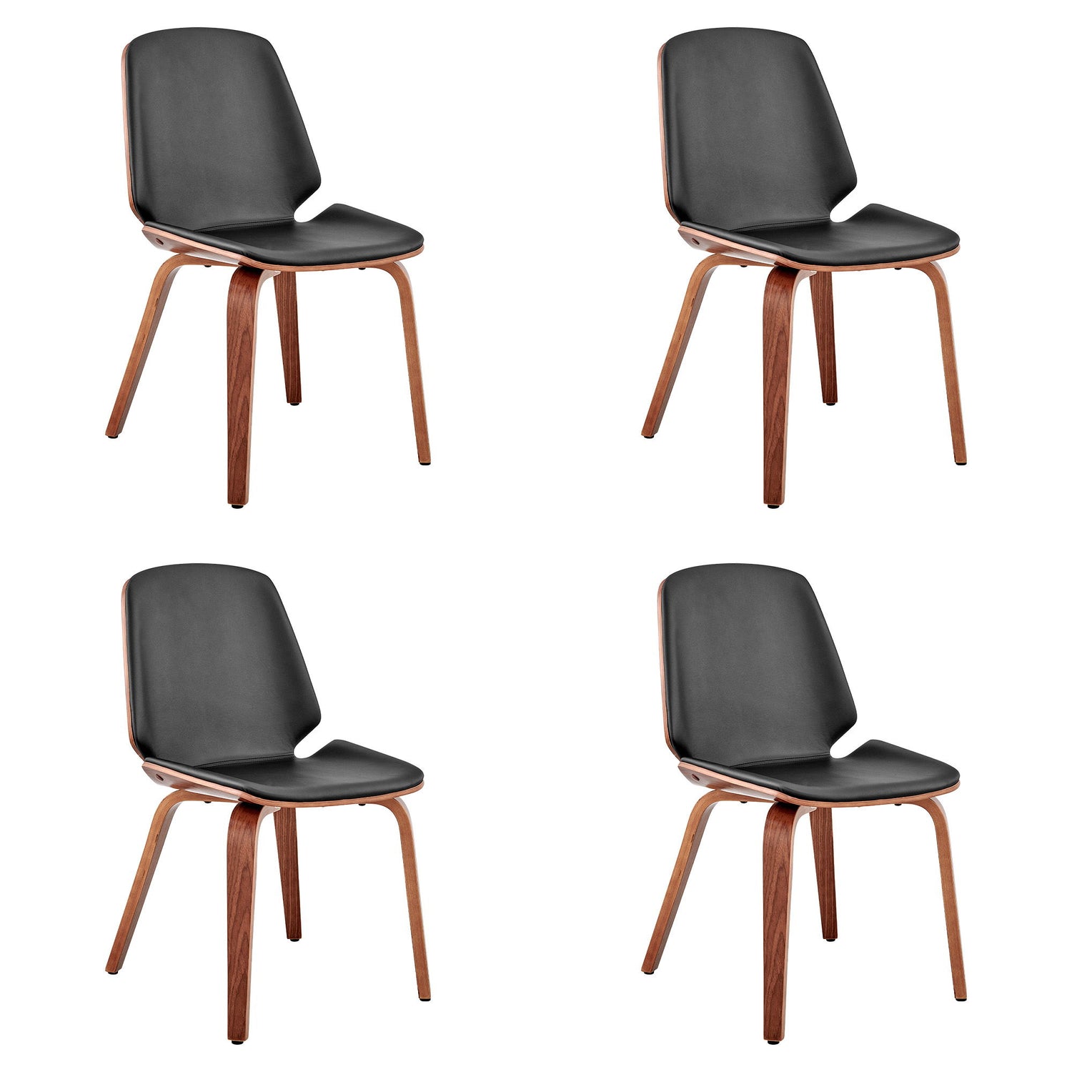 Brinley - Dining Room Accent Chair (Set of 4) - Black Faux Leather And Walnut Wood