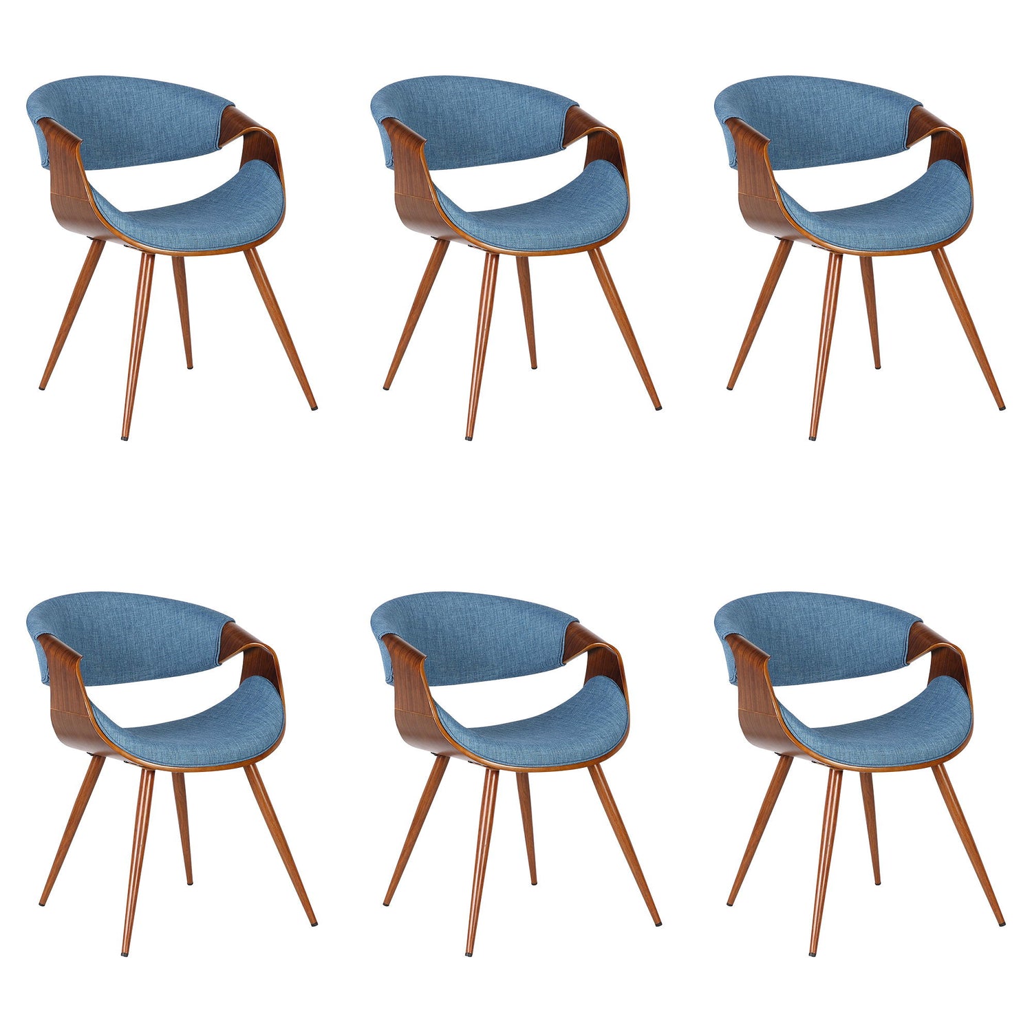 Butterfly - Mid-Century Dining Chair (Set of 6) - Walnut Finish And Blue Fabric