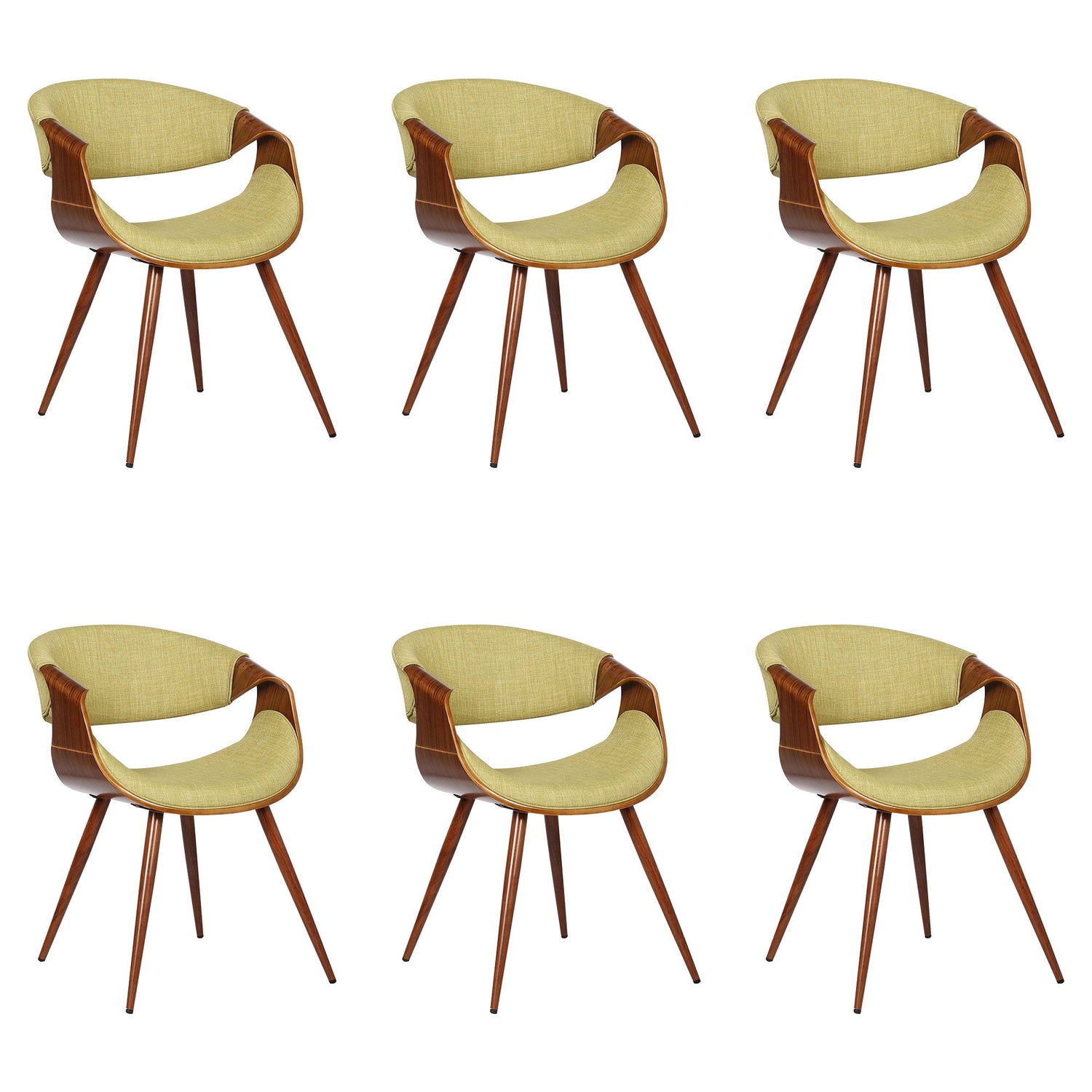 Butterfly - Mid-Century Dining Chair (Set of 6) - Walnut Finish And Green Fabric
