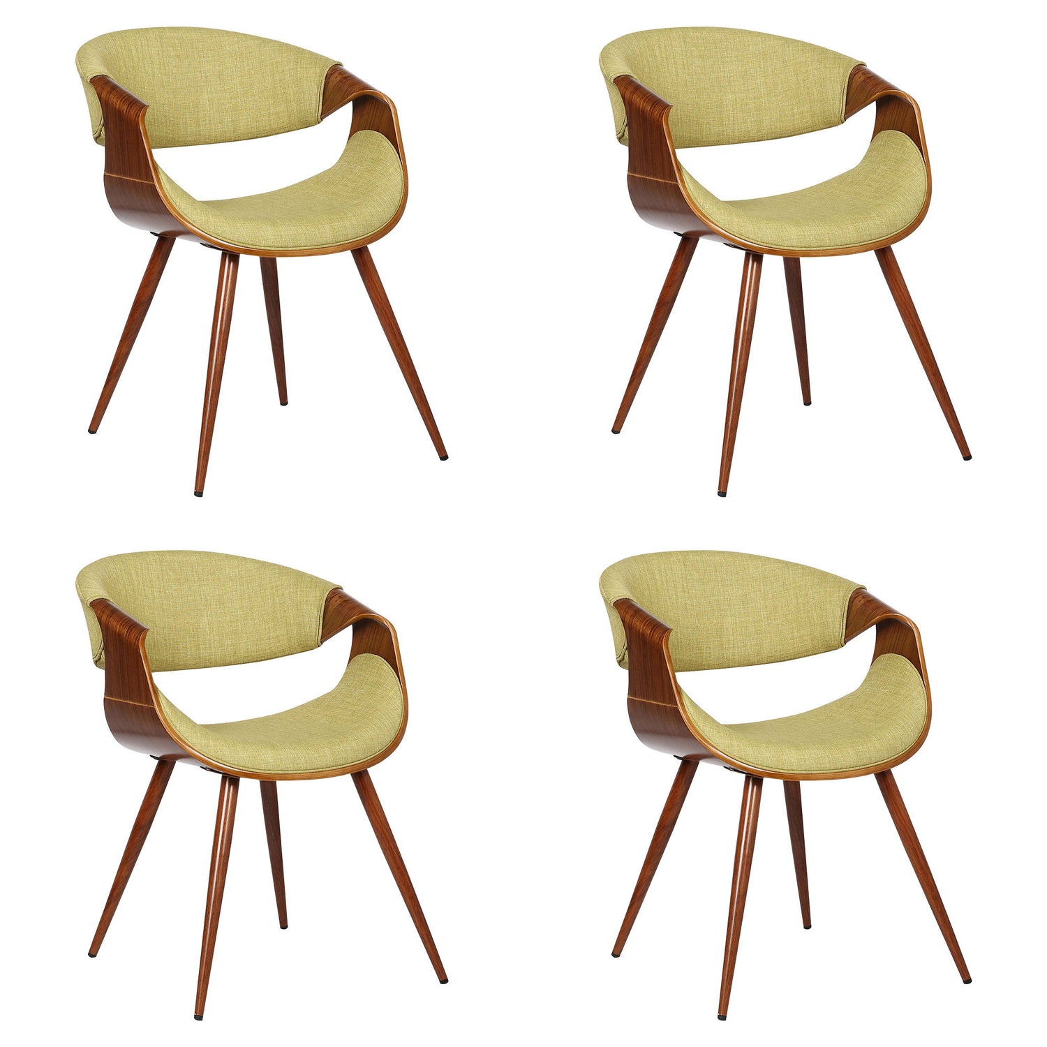 Butterfly - Mid-Century Dining Chair (Set of 4) - Walnut Finish And Green Fabric