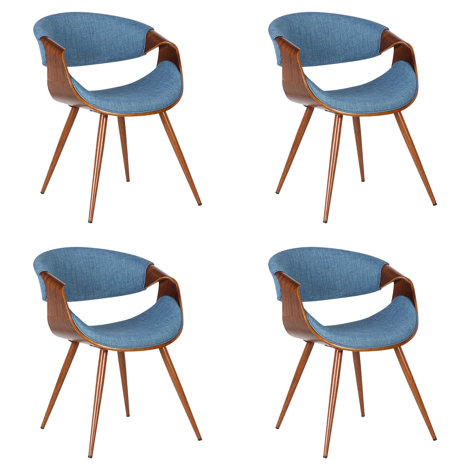Butterfly - Mid-Century Dining Chair (Set of 4) - Walnut Finish And Blue Fabric