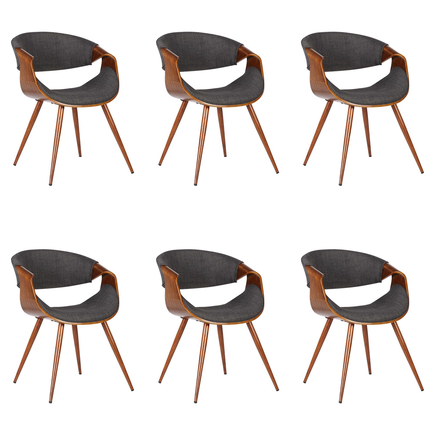 Butterfly - Mid-Century Dining Chair (Set of 6) - Walnut Finish And Charcoal Fabric