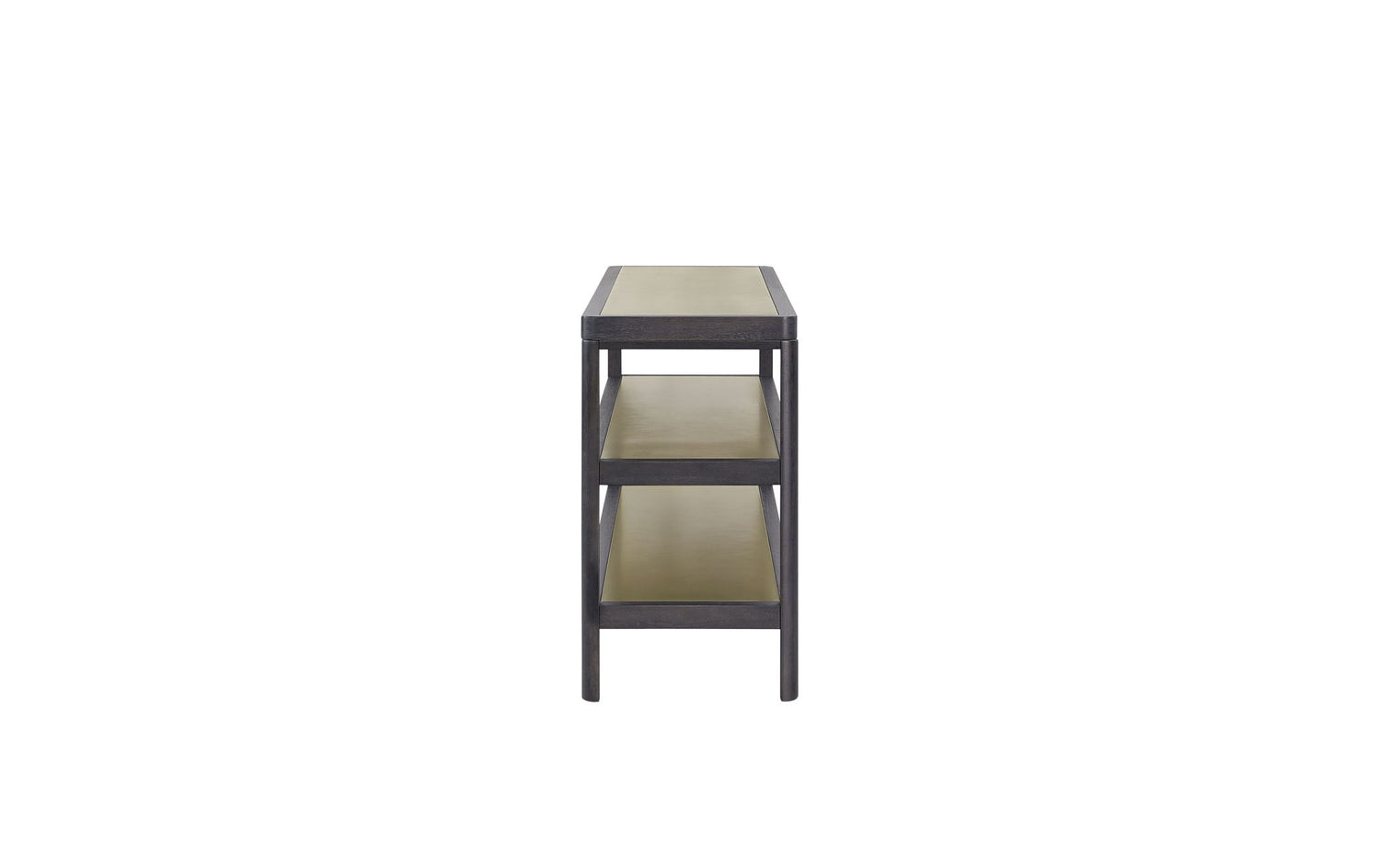 - Design Features: The table incorporates metal insets on all three shelves, adding an industrial touch to its softer modern design elements.