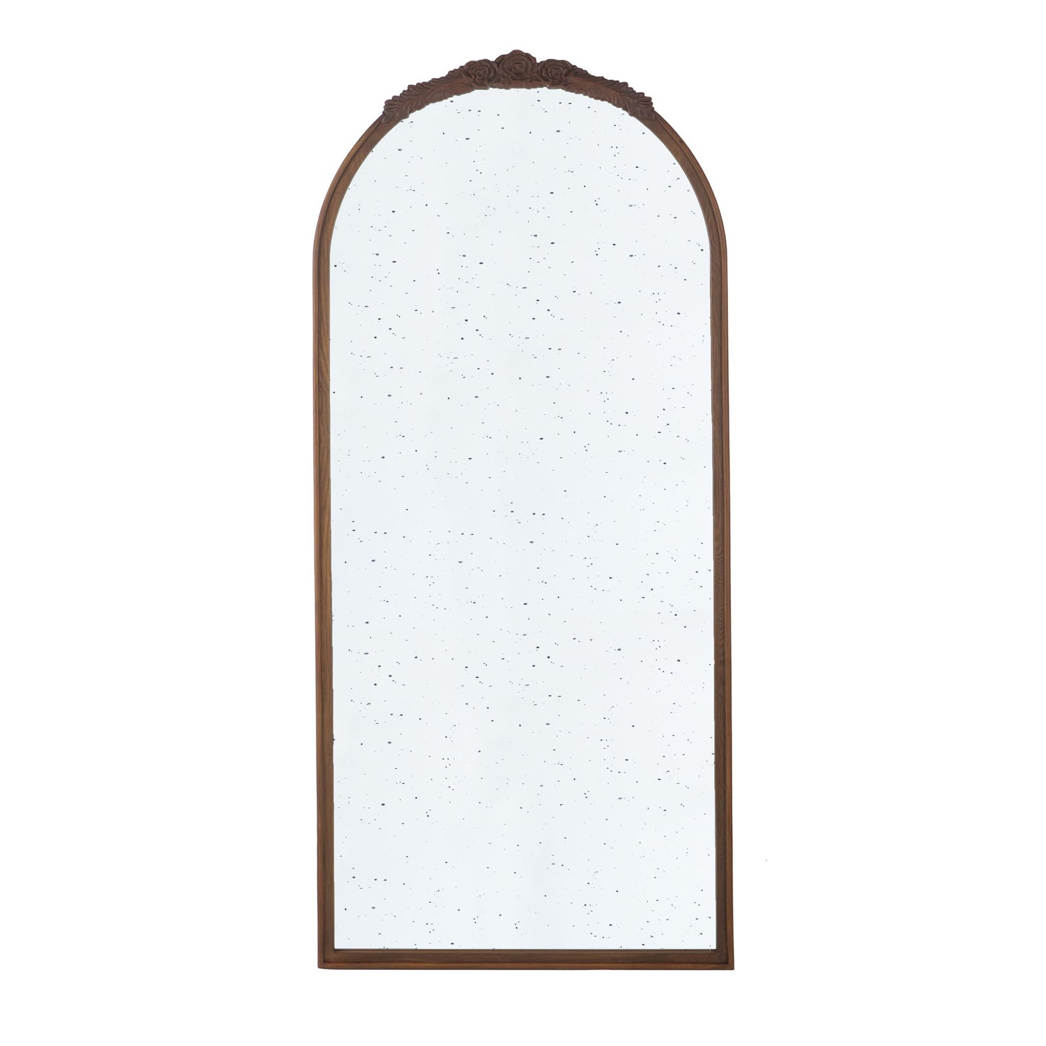 Hand Carved Rose Antique Mirror Frame, Large Arch Mirror Wall Decor For Living Room, Bathroom, Entryway - Brown