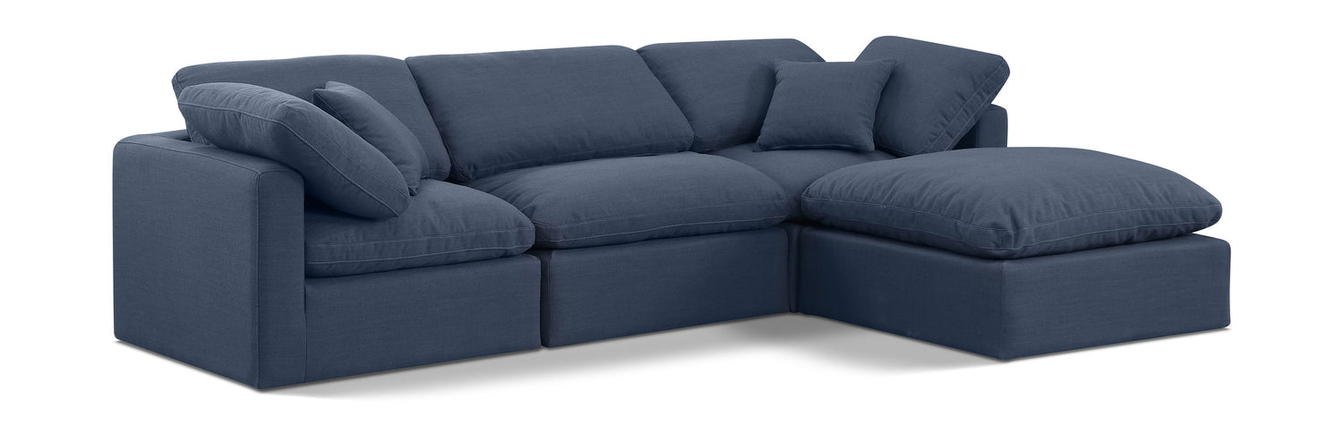 Indulge - Linen 4 Piece Modular Sectional With Chaise - Navy