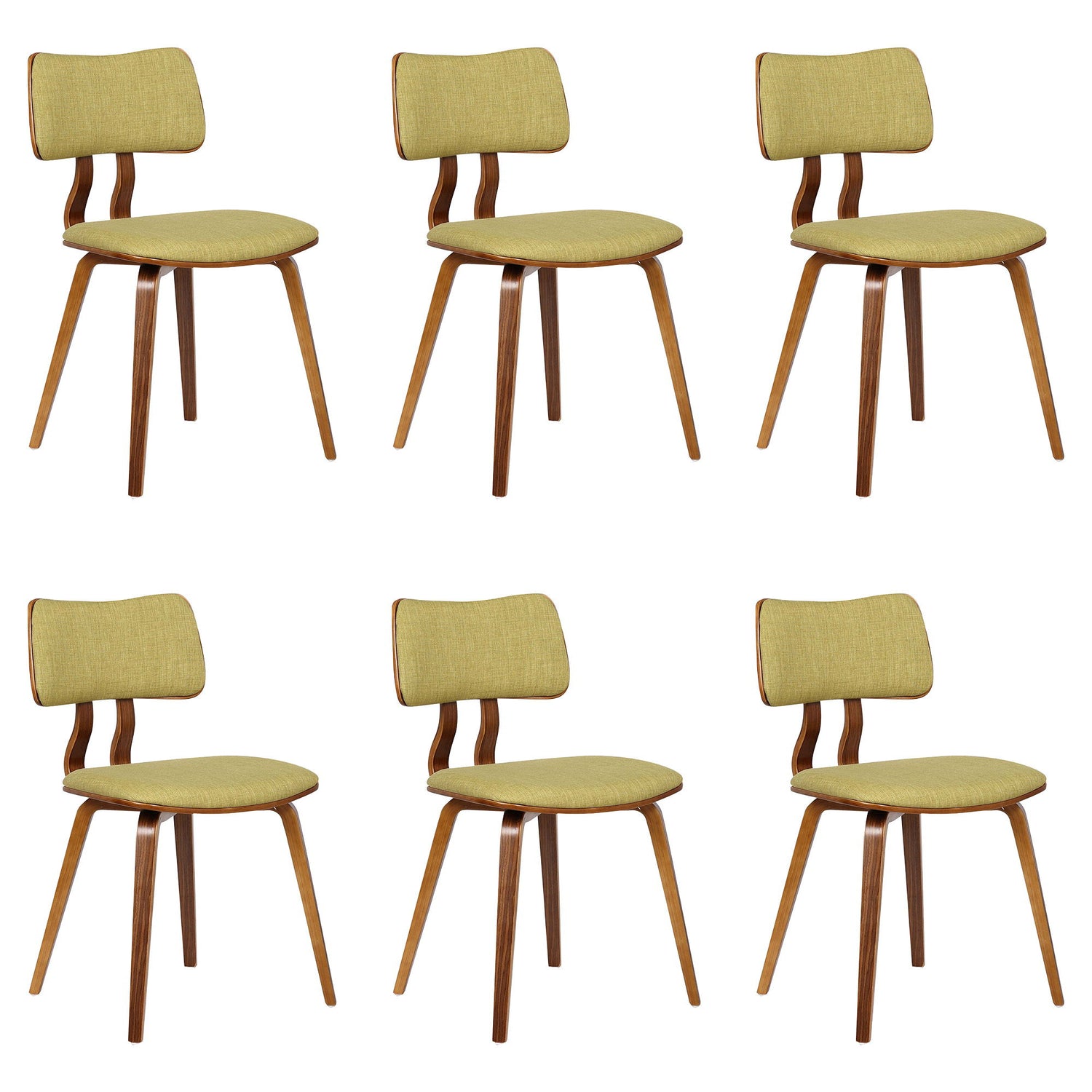 Jaguar - Mid-Century Dining Chair (Set of 6) - Walnut Wood And Green Fabric
