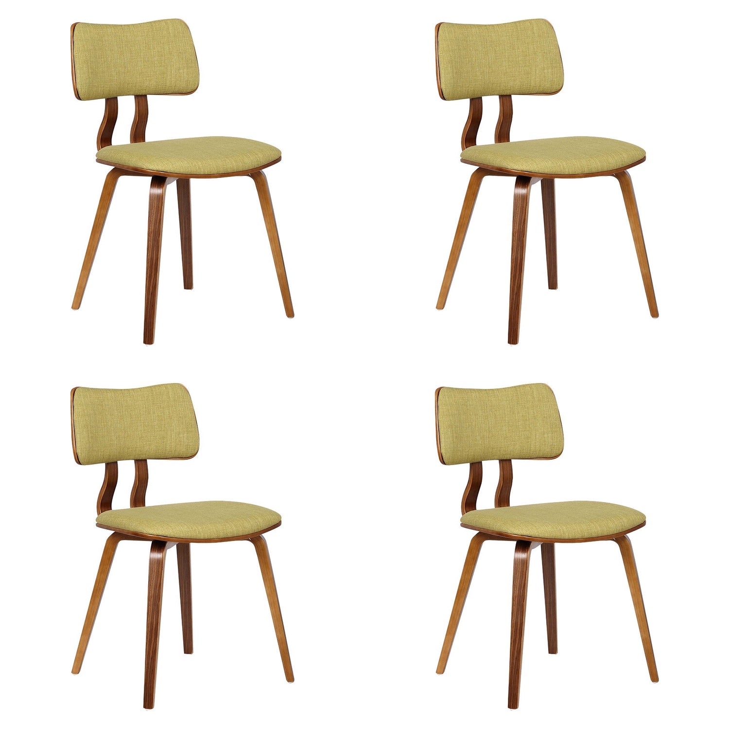 Jaguar - Mid-Century Dining Chair (Set of 4) - Walnut Wood And Green Fabric