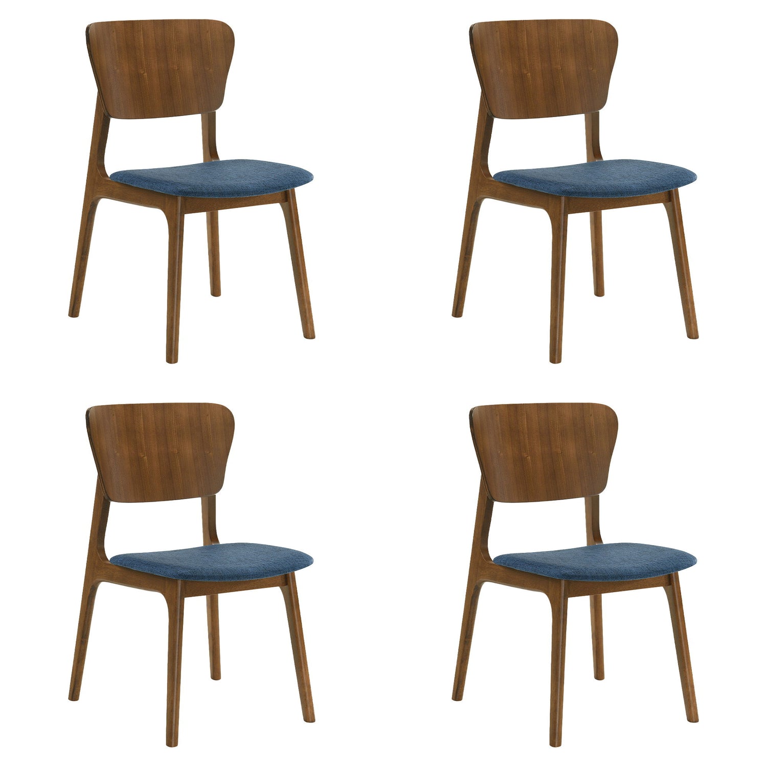 Kalia - Wood Dining Chair (Set of 4) - Walnut Finish With Blue Fabric