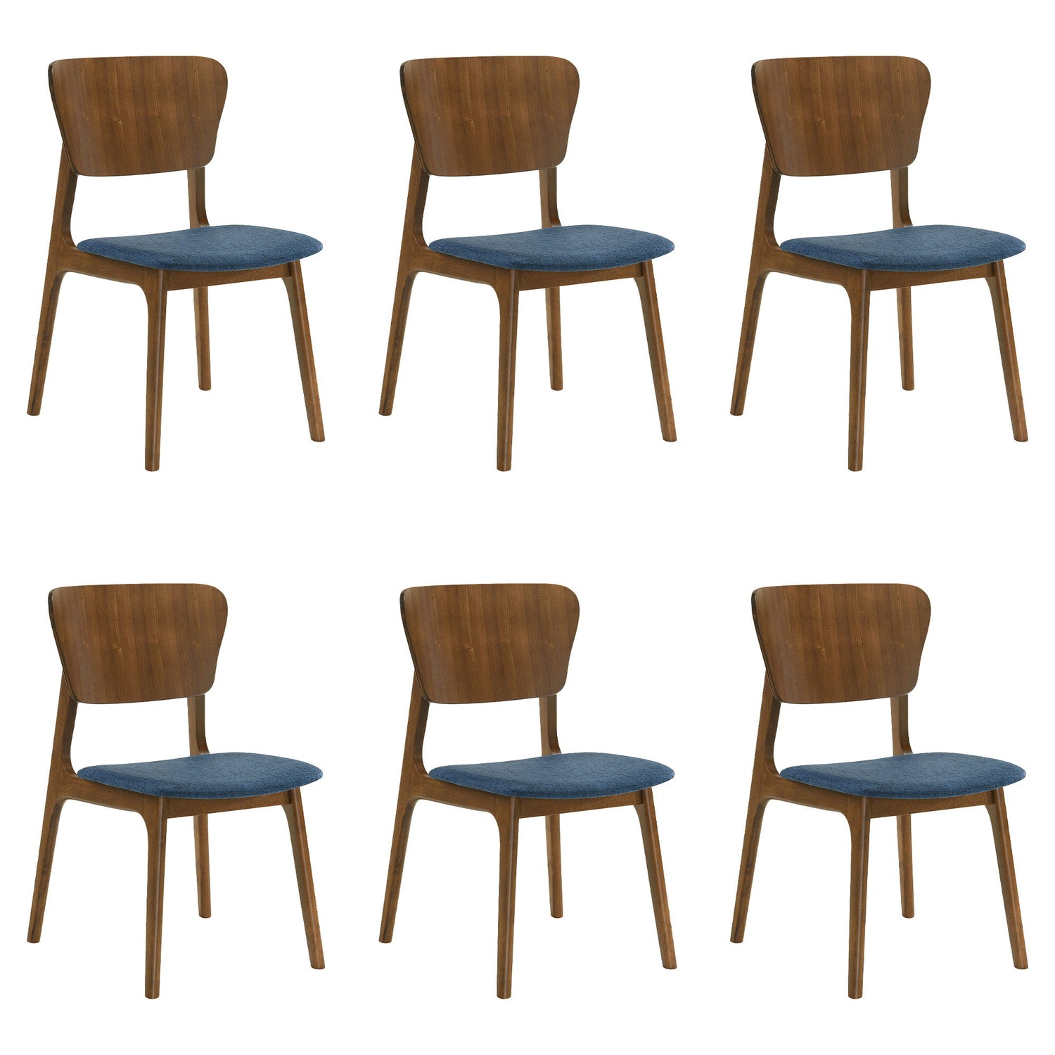 Kalia - Wood Dining Chair (Set of 6) - Walnut Finish With Blue Fabric