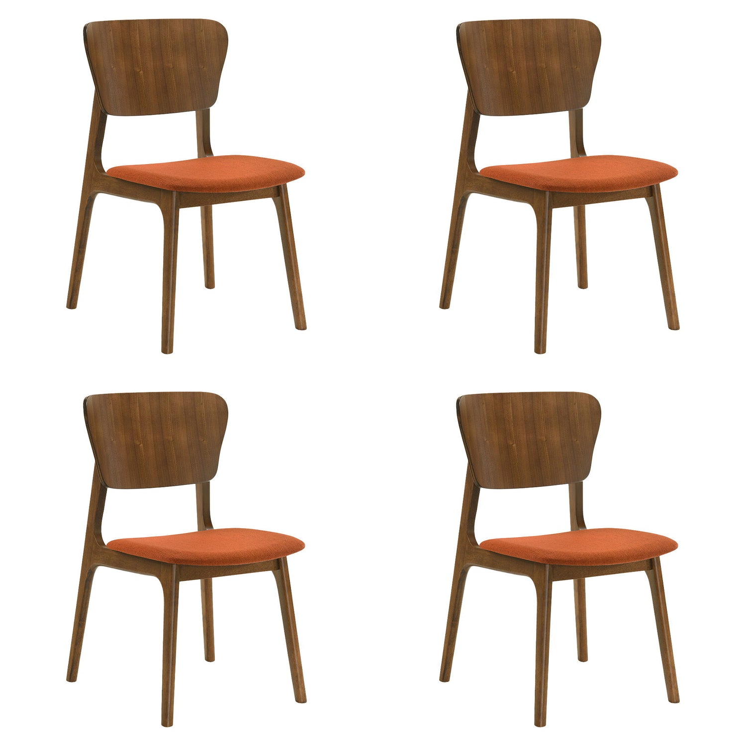 Kalia - Wood Dining Chair (Set of 4) - Walnut Finish With Orange Fabric