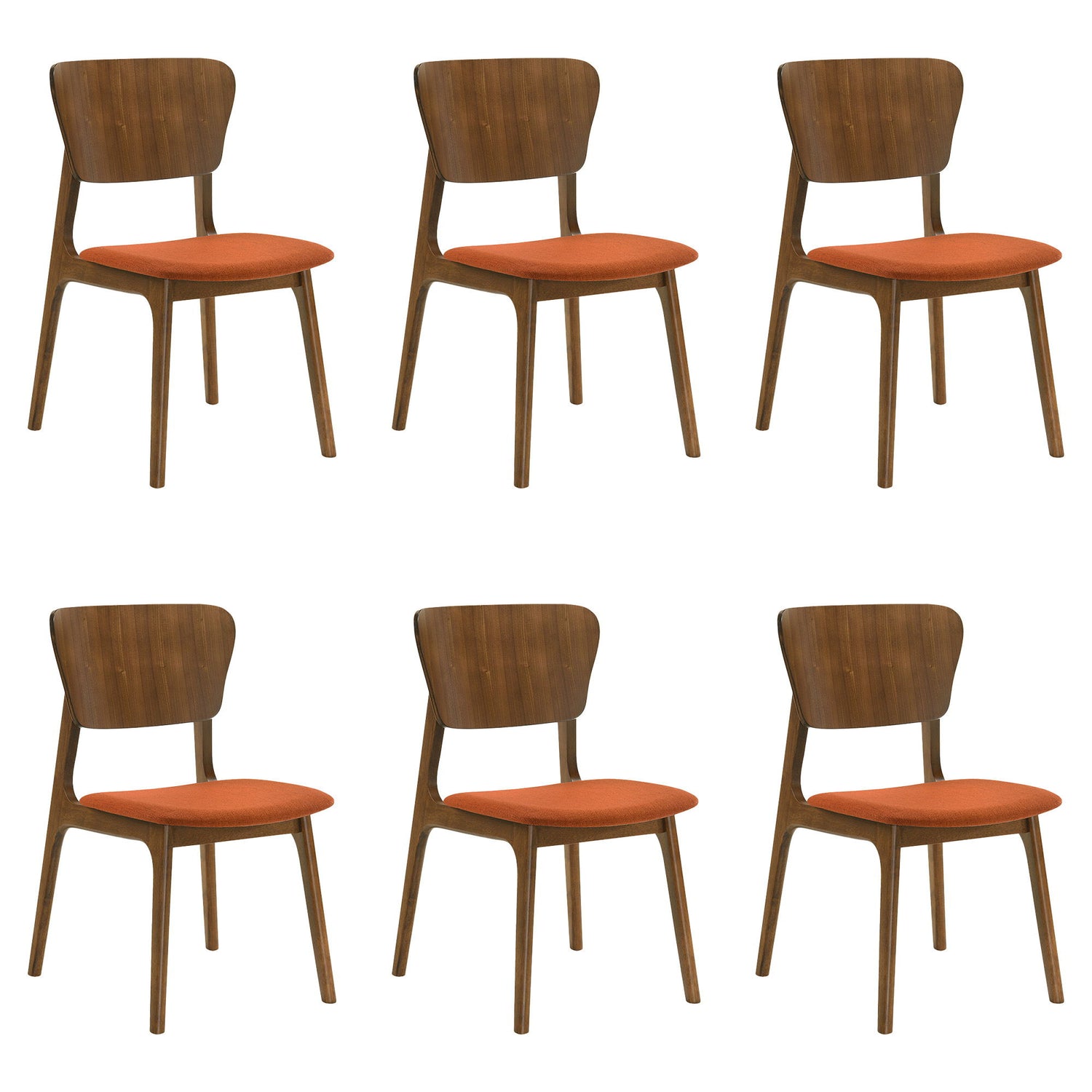 Kalia - Wood Dining Chair (Set of 6) - Walnut Finish With Orange Fabric