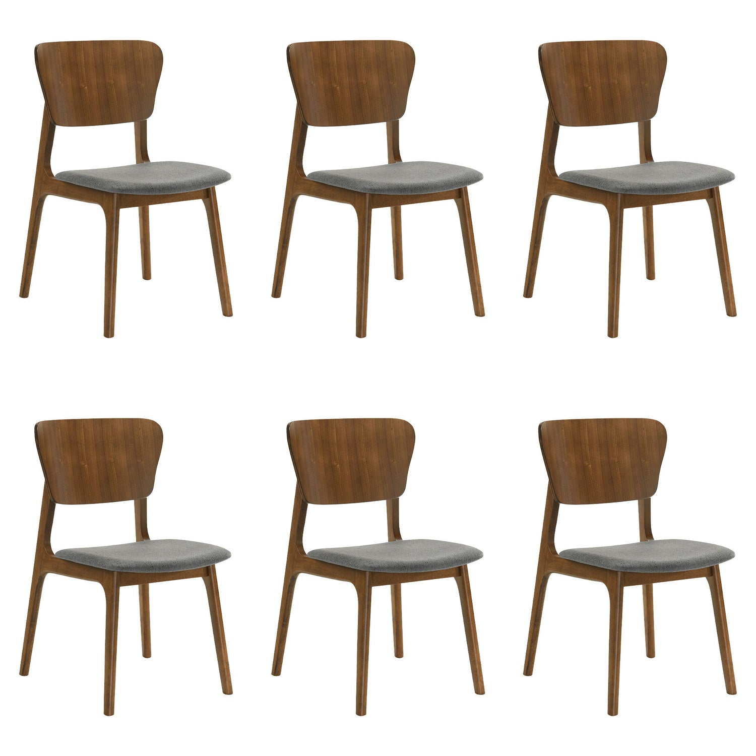 Kalia - Wood Dining Chair (Set of 6) - Walnut Finish With Charcoal Fabric