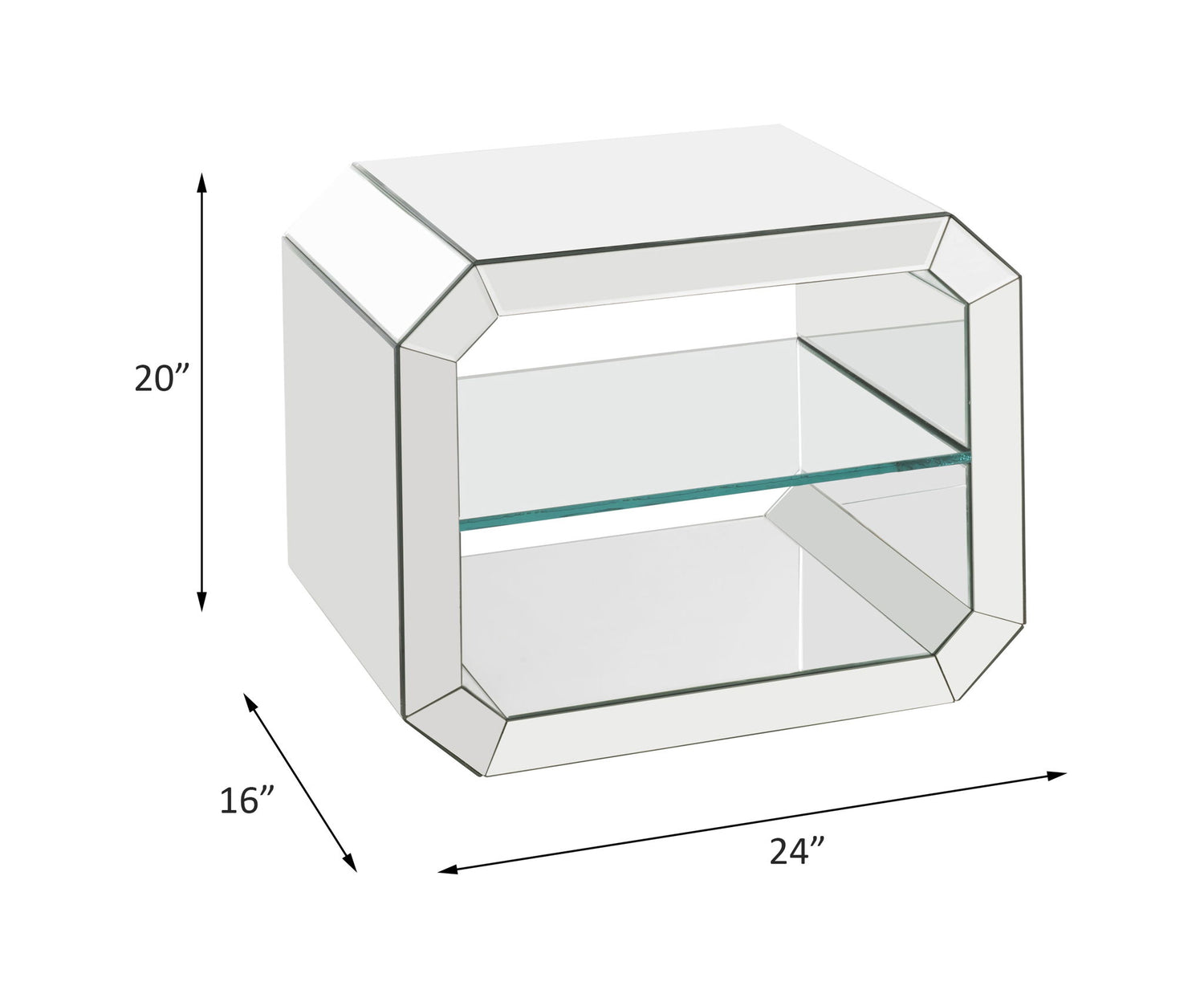- Finish: Mirrored & Clear Glass