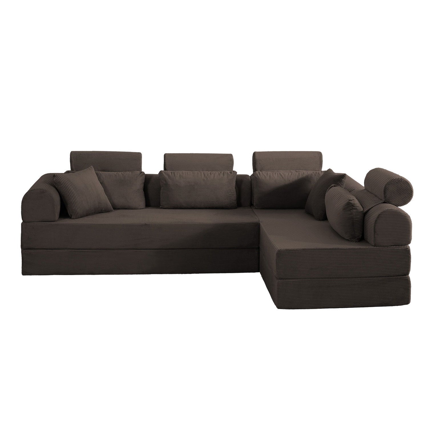 L Shape Modular Sectional Sofa, Couch With Bed Conversion, Space Saving Design For Bedroom - Brown