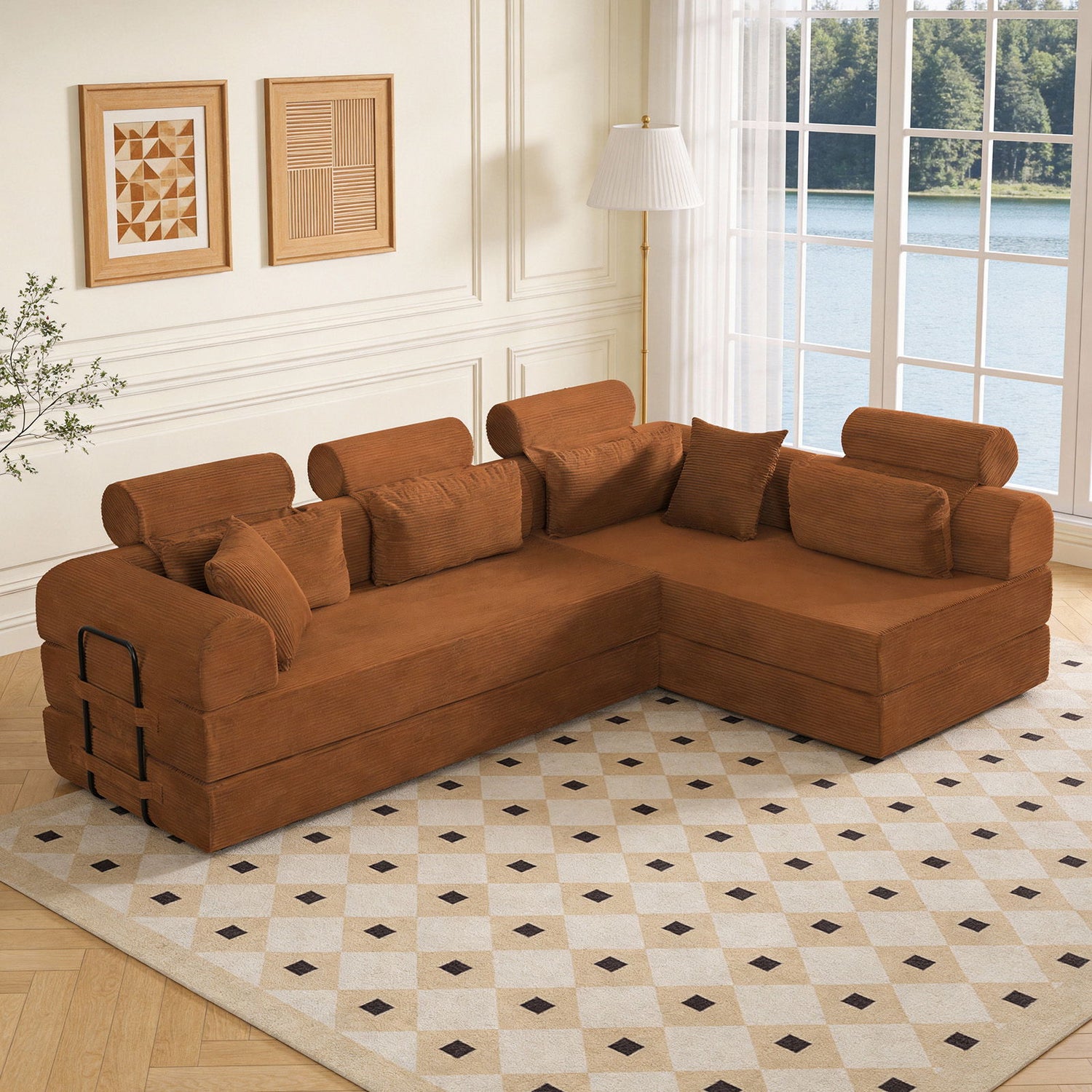 - Converts to Queen Bed: Expands from a compact sectional into a full queen mattress, maximizing space and utility