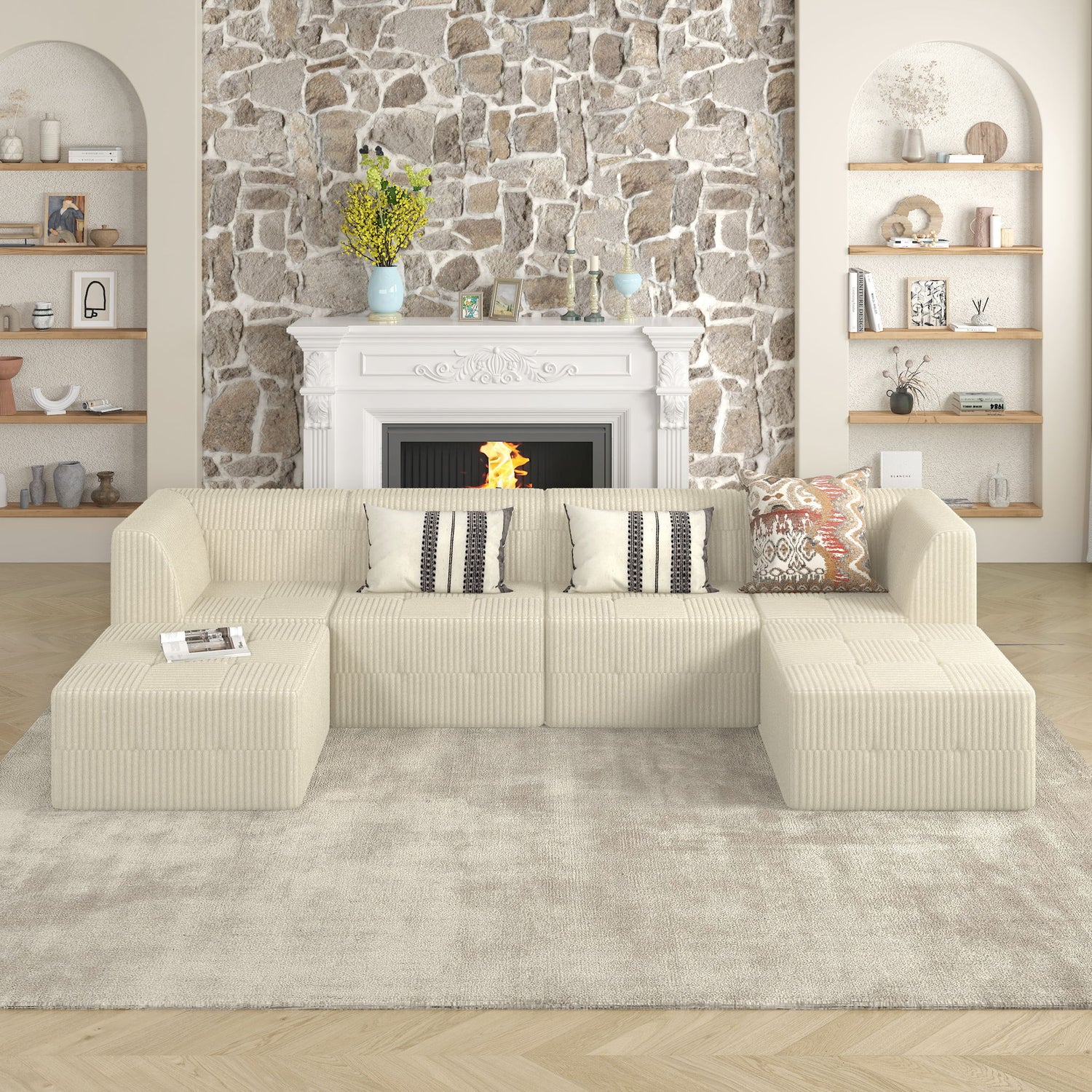 - Minimalist Design: Features a modern modular shape with clean lines and premium fabric for a timeless look.
