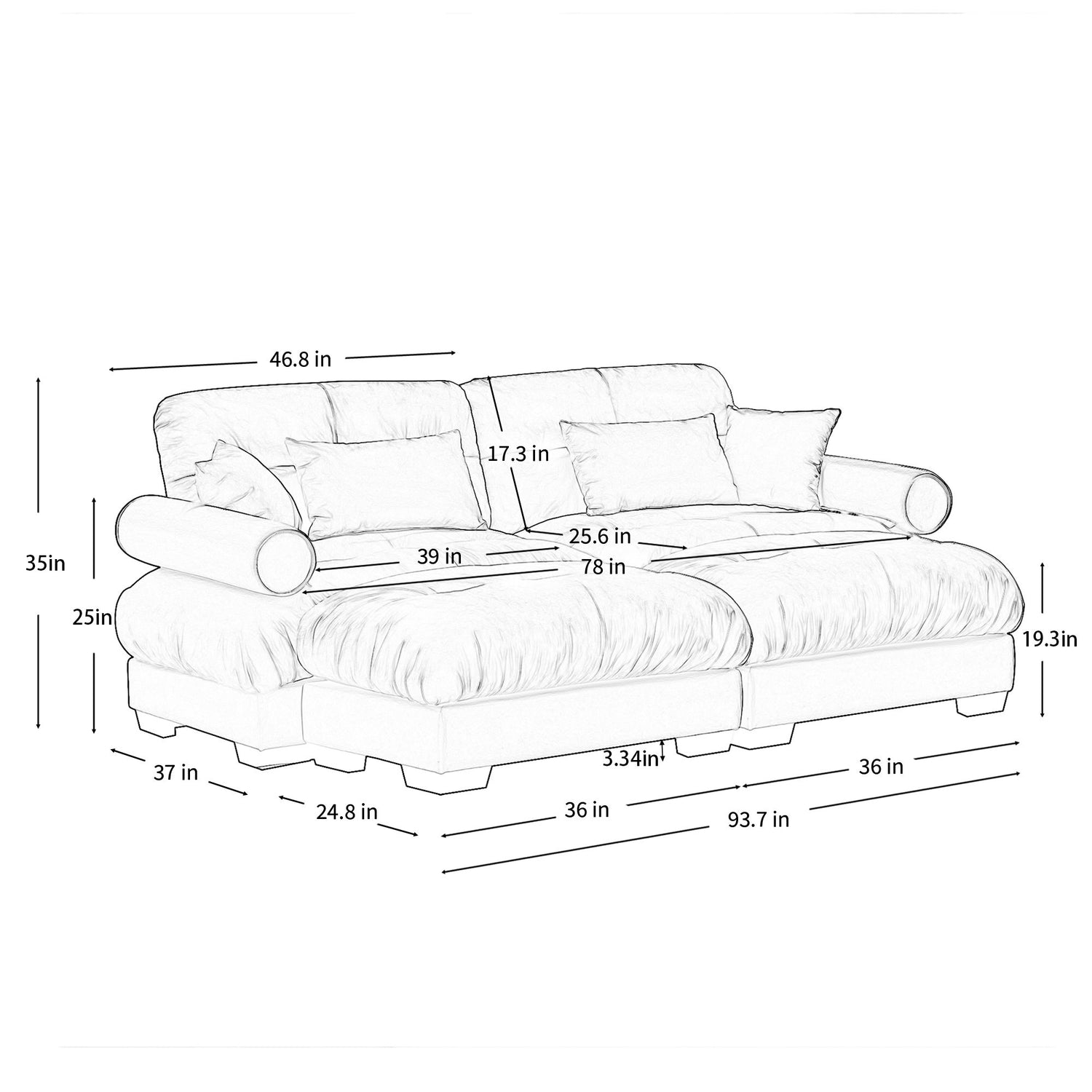 Modern Sectional Sofa With Ottoman, Round Bolster Armrests, Waist And Throw Pillows
