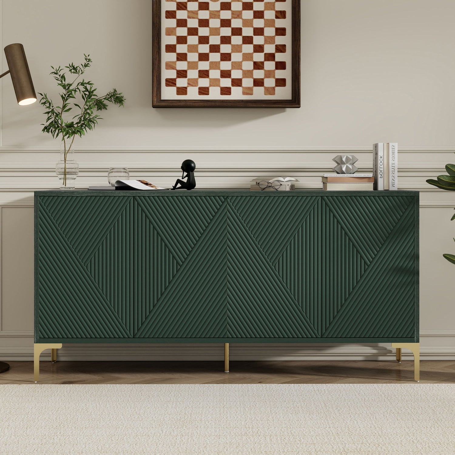 Modern Light Luxury Style Large Storage Space Sideboard With 4 Doors And Rebound Device - Olive Green