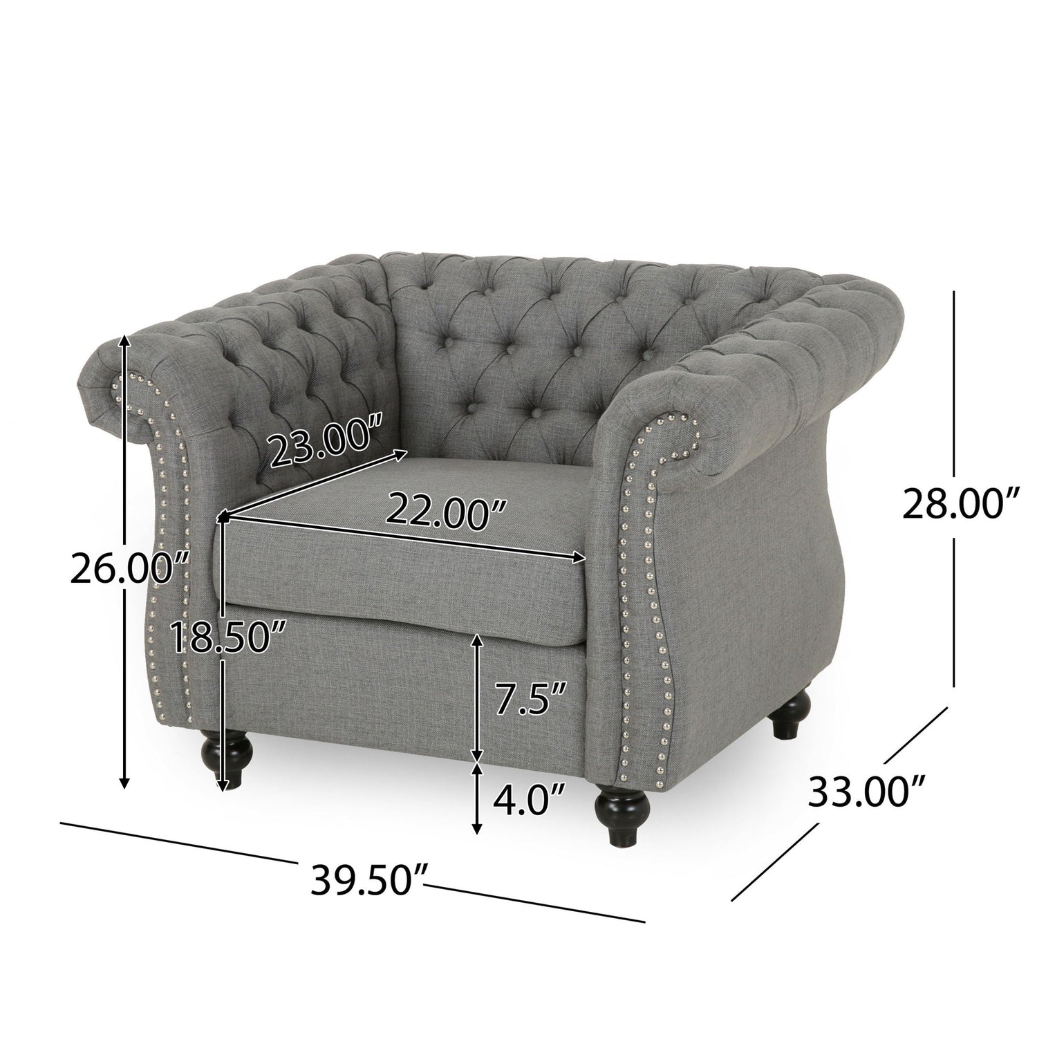 Nexuson - Upholstered Fabric Chesterfield Chair With Deep Tufted And Nailhead Trim - Dark Gray