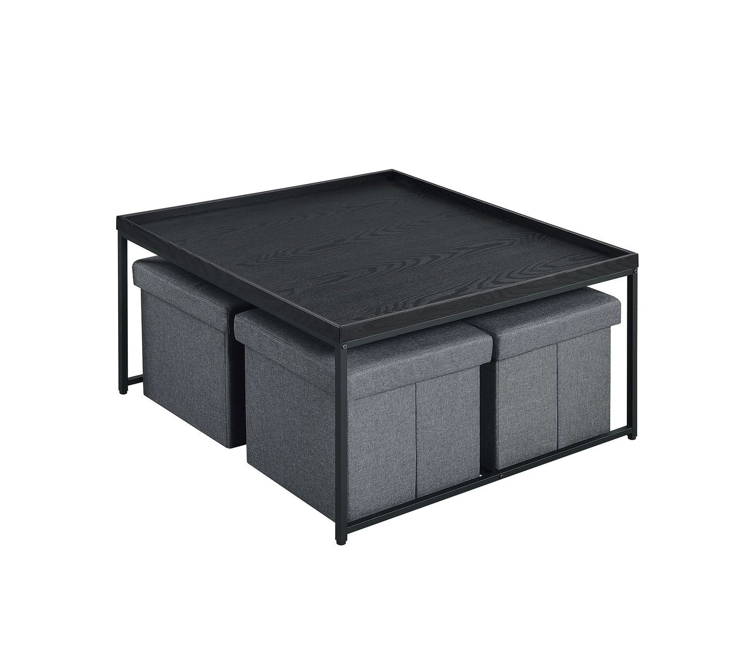 Vinny - Wood Grain Coffee Table Set With Raised Edges - Black / 5 Pc. Coffee Table, 4 Stools is backordered and will ship as soon as it is back in stock.