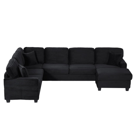 Upholstered U-Shaped Sectional Sofa With Movable Ottoman And Side Storage Pockets