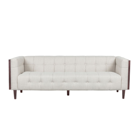 Contemporary 3 Seater Sofa With Button Tufted Waffle Stitching - Beige
