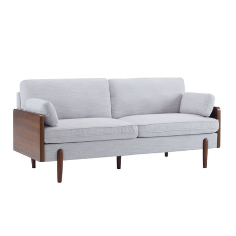 Pelumi - Loveseat With 5 Pillows - Light Gray Linen & Platinum
