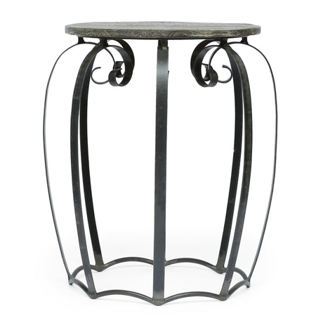 Modern Industrial End Table With Mango Wood Top And Iron Frame - Gray