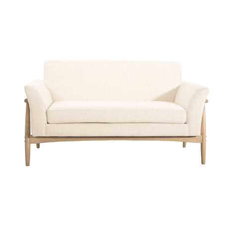 Modern Fabric Upholstered Loveseat With Elm Wood Legs And Flare Arms - Beige