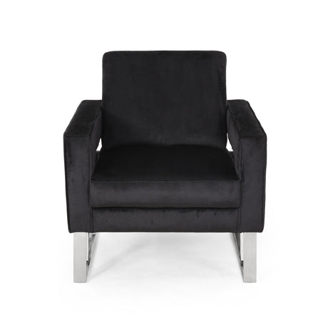 Modern Glam Club Arm Chair With Velvet Upholstery And Stainless Steel Legs - Black