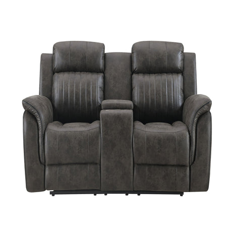 Hirah - Motion Loveseat With Console & USB Port - Dark Gray Polish Microfiber