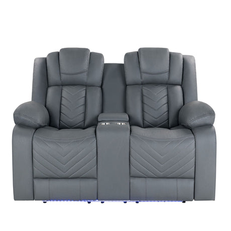 Raize - 10 Power Console Reclining Loveseat With LED - Gray