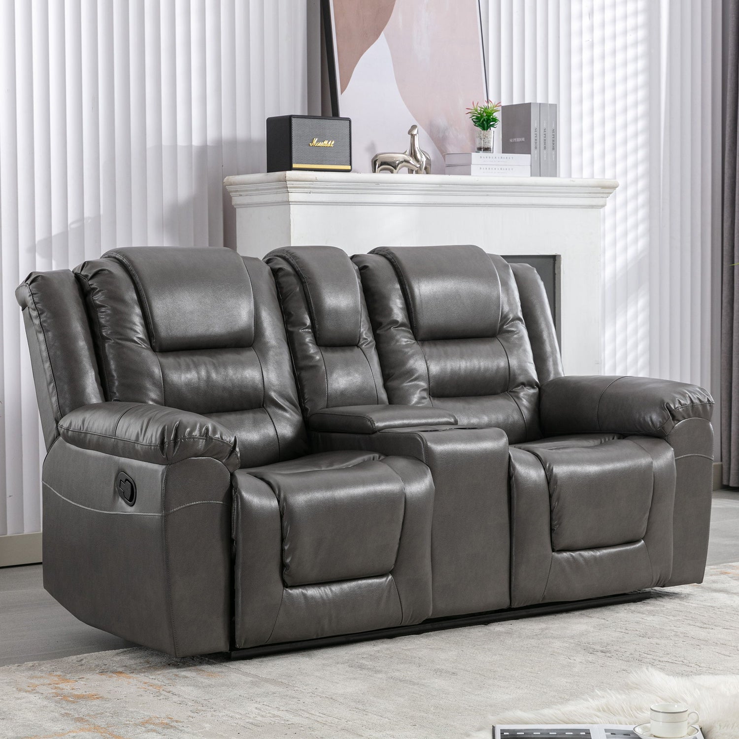 2 Seater Home Theater Recliner Manual Recliner Chair With A Storage Box And Two Cup Holders For Living Room - Gray