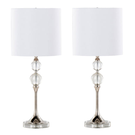 Clara - 26" Table Lamp (Set of 2) - Clear Crystal And Polished Nickel With White Linen Shade
