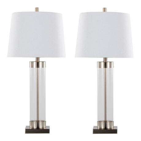 Glacier - 30" Table Lamp (Set of 2) - Clear Glass And Brushed Nickel With White Linen Shade