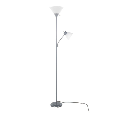 Dual - 72" Floor Lamp - Silver Metal And Frosted White Plastic Shades