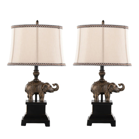 Elephant - 27" Table Lamp (Set of 2) - Bronze Polyresin With Natural Linen Soft Back Shade