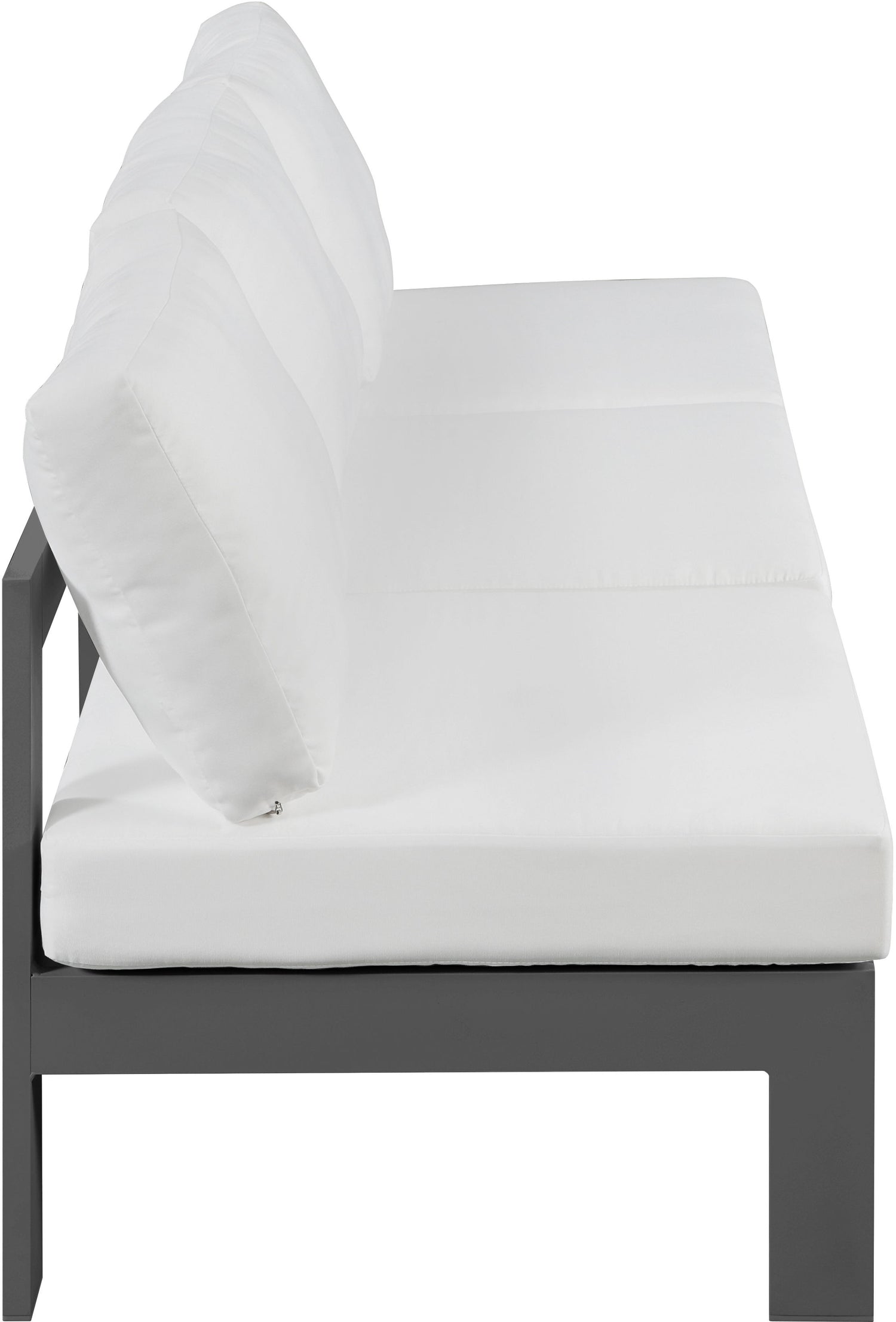Nizuc - Outdoor Patio 3 Seat Armless Modular Sofa With Gray Frame - White is backordered and will ship as soon as it is back in stock.