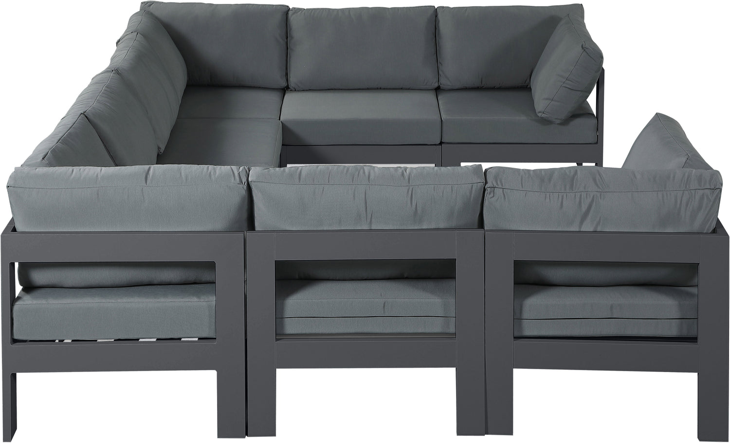 Nizuc - Outdoor Patio 8 Piece Modular U-Shaped Sectional With Gray Frame - Gray