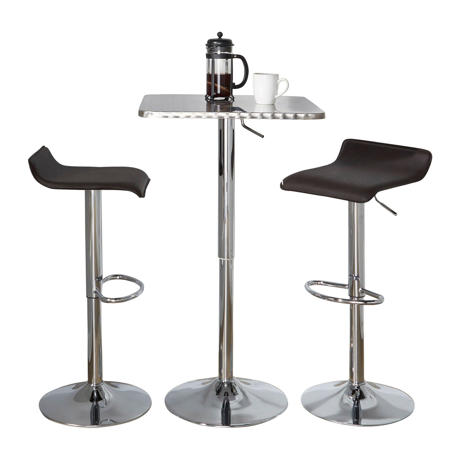 Ale - 3 Piece Bar Set Bistro Square Contemporary Adjustable Oval Footrest - Silver / Chrome / Brown