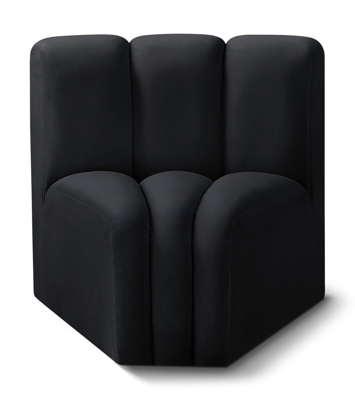 Arc - Velvet Curved Corner Chair - Black is backordered and will ship as soon as it is back in stock.