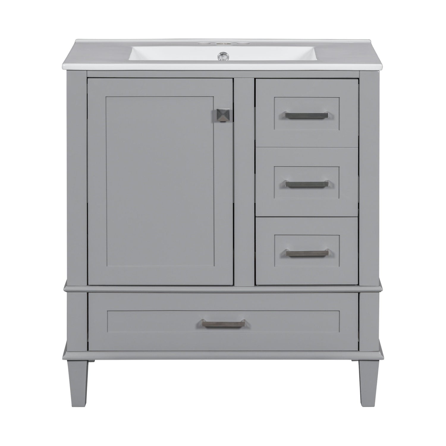 Bathroom Vanity, Modern Bathroom Cabinet With Sink Combo Set, Bathroom Storage Cabinet With A Soft Closing Door And 3 Drawers, Solid Wood Frame - Gray
