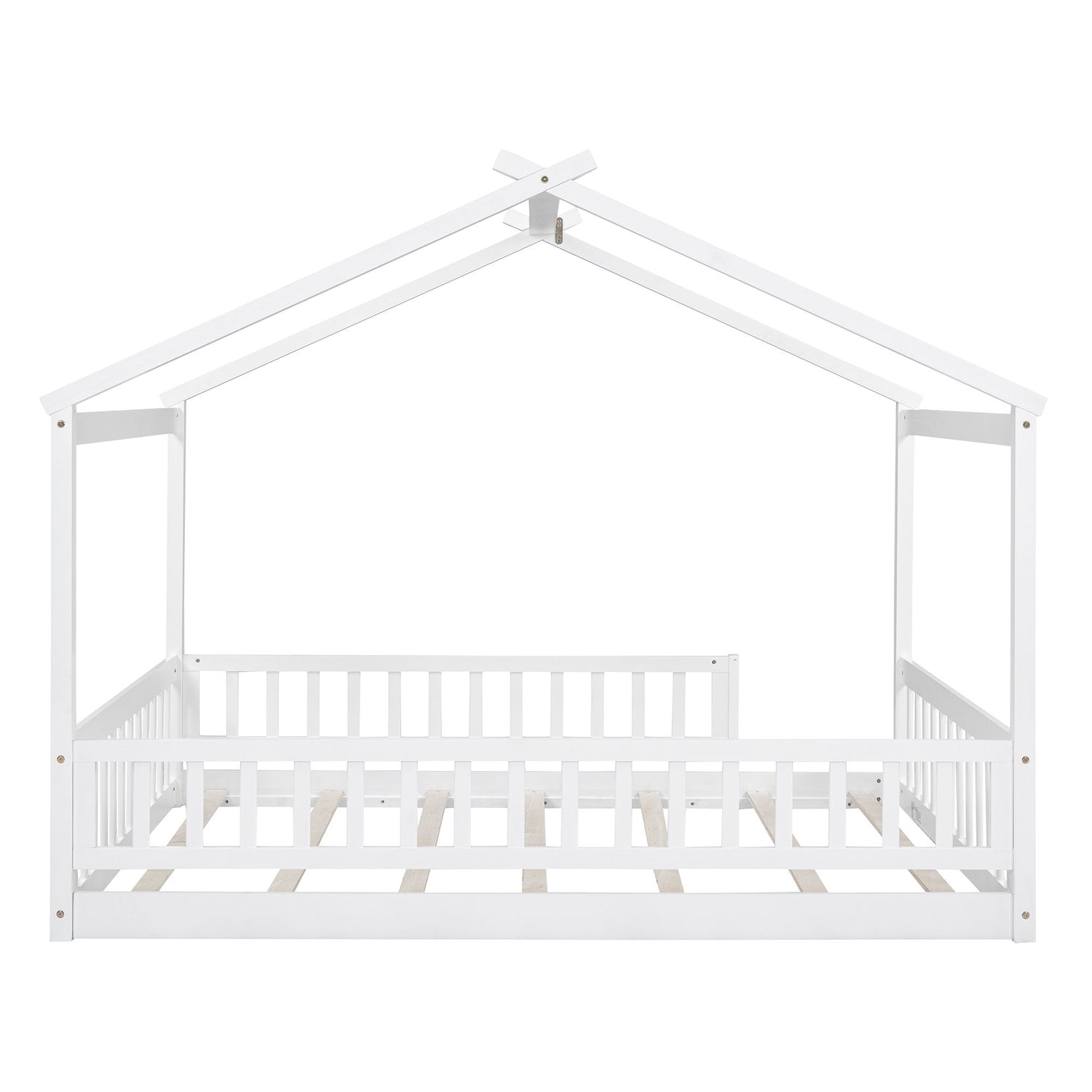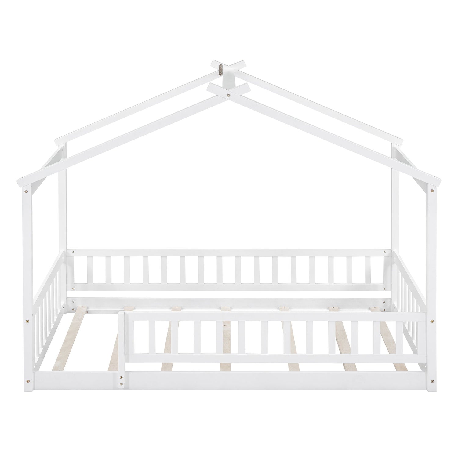 Playhouse Design: Featuring a roof and fence, this unique bed creates a fun and charming space that serves as both a comfortable sleeping area and a playful retreat for kids to enjoy.