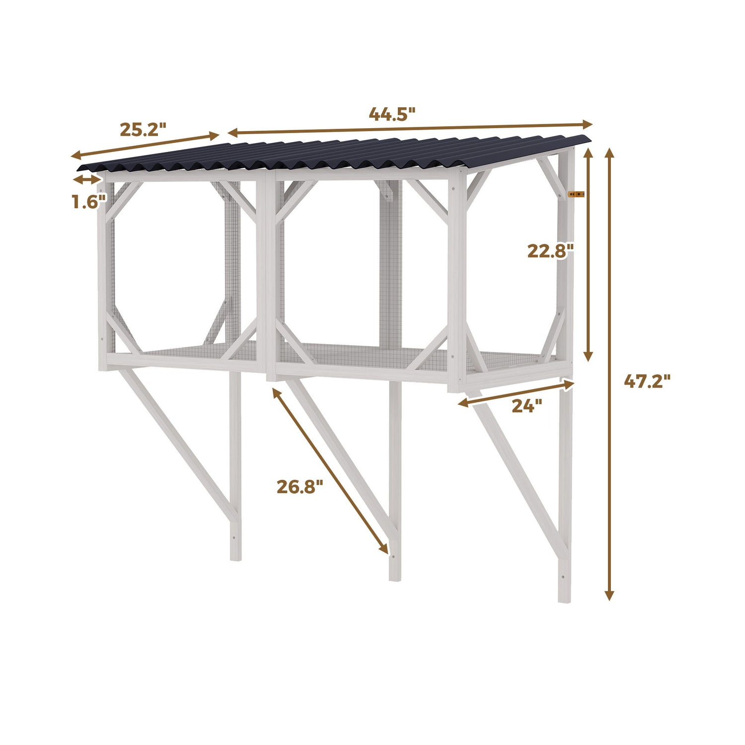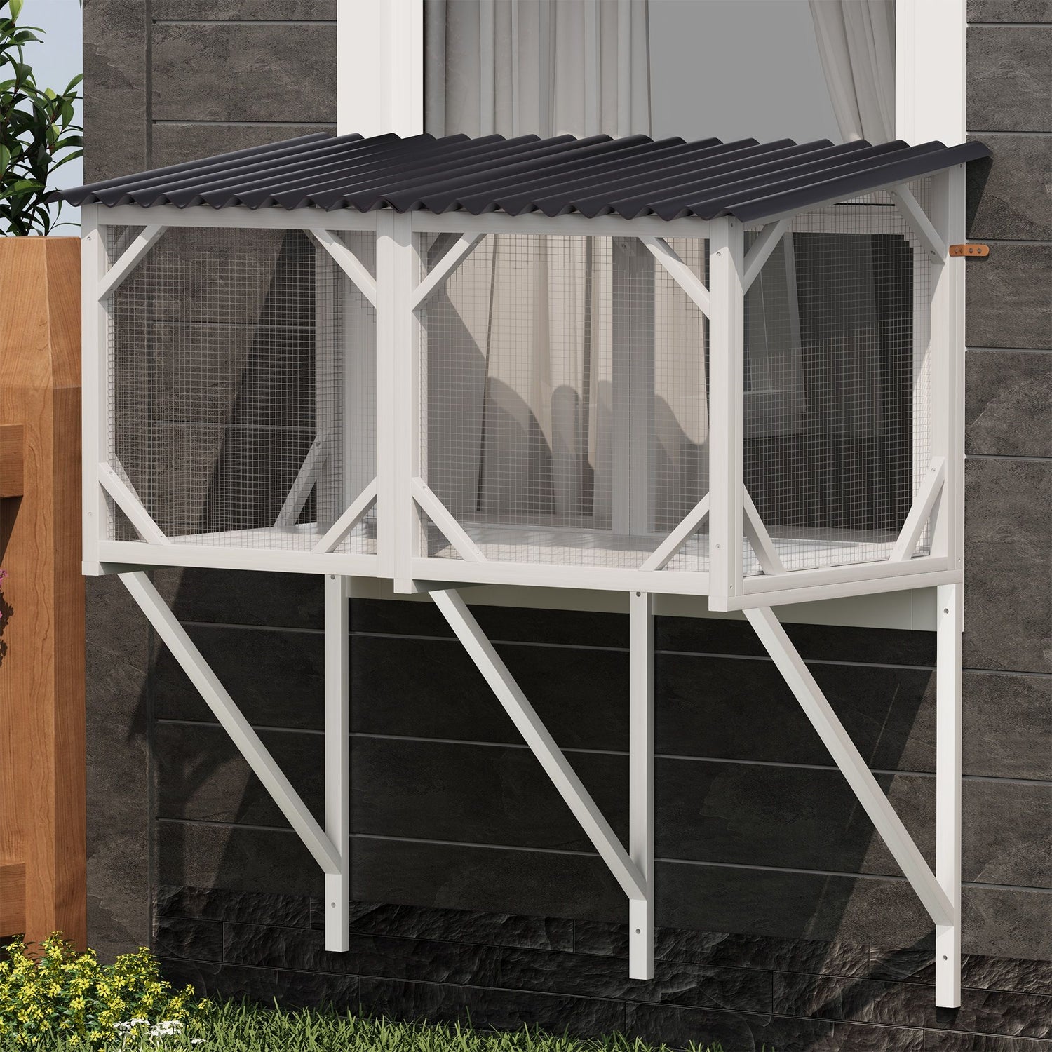 - Strong &Durable: The window catio is made of 100% solid Finnish spruce wood. It has 16 braces for better stability. The waterproof roof and paint of the cat window perch ensures durability for all weather and year-round outdoor use.