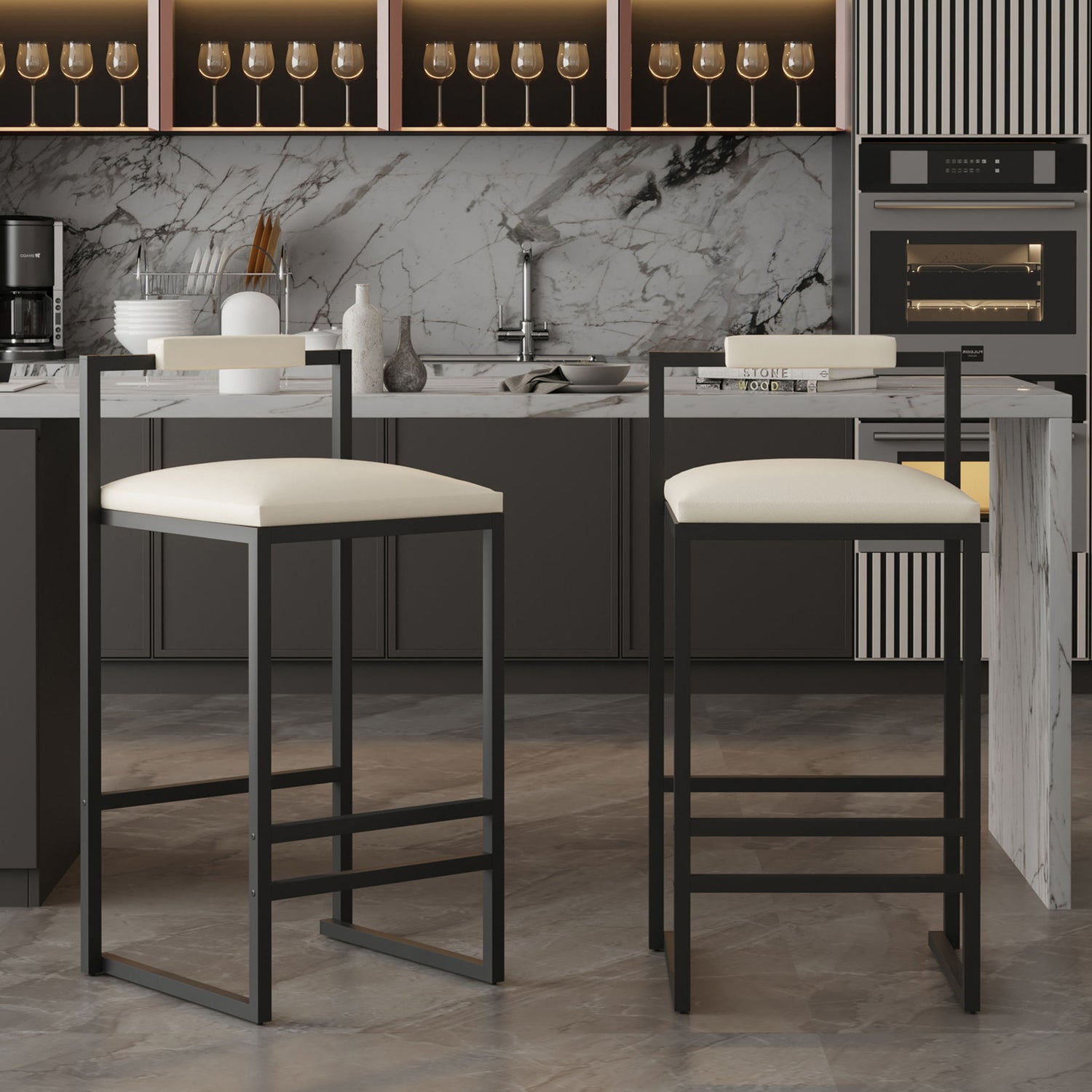 Elegant Bar Stool Set With Backrest And Footrest, Upholstered, Iron Frame, Counter Height - Black