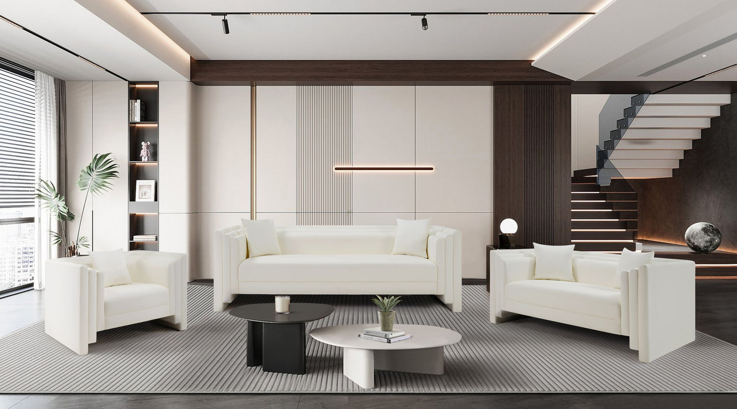 Everett - Vegan Leather 88.5" Upholstered Sofa - Cream